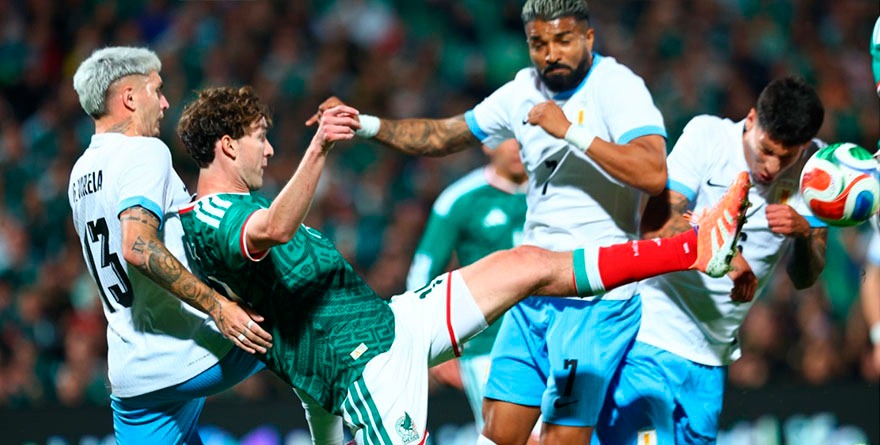 En un deslucido partido, México y Uruguay empataron sin goles en el Estadio de Santos, para que el conjunto azteca ligue cinco duelos sin ganar.