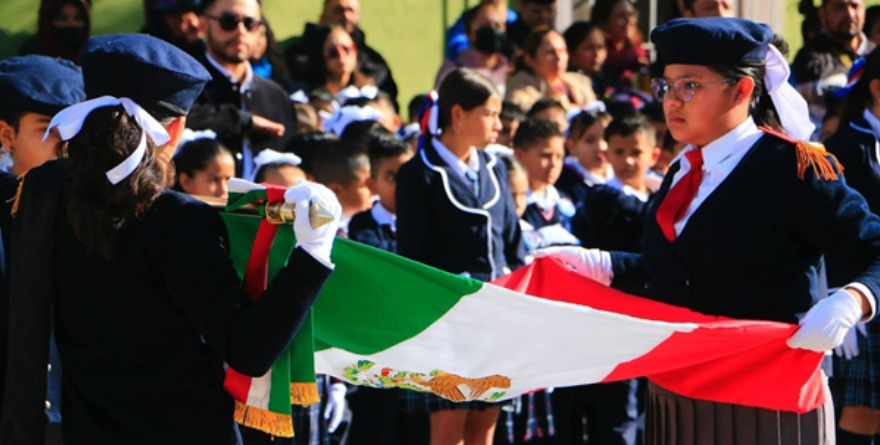 En Soledad de Graciano Sánchez, la plaza principal se convirtió en escenario de formación cívica para alumnas y alumnos de tercer grado de primaria, quienes realizaron el Juramento a la Bandera en una ceremonia encabezada por el alcalde Juan Manuel Navarro Muñiz. El acto reunió a comunidad educativa y familias en un momento simbólico donde las nuevas generaciones reafirmaron respeto y compromiso con los valores patrios.
