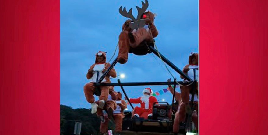 La Navidad llegó a este municipio con una dosis extra de ingenio, humor y espíritu festivo. Durante el más reciente desfile navideño —publicado en redes sociales con un video que se hizo viral—, un carro alegórico logró arrancar carcajadas y aplausos: cinco hombres disfrazados de renos iban montados sobre una estructura metálica adaptada a una máquina de construcción conocida popularmente como “mano de chango”.