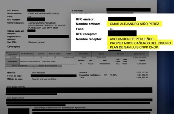 Los cañeros presentaron pruebas, incluida la factura y la transferencia conocida como SPEI a la cuenta de Omar Niño, además del testimonio de cómo fueron engañados por Nuño y Domínguez para cobrar fuertes cantidades de dinero aprovechándose del gran escaparate que representan las mañaneras.