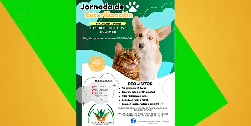 Villa de Guadalupe, S.L.P., 26 de octubre de 2025. – En una acción que combina salud pública y amor por los peludos, el Ayuntamiento de Villa de Guadalupe anunció el arranque de su campaña gratuita de esterilización canina y felina, que llevará servicios veterinarios hasta las comunidades más alejadas del municipio.