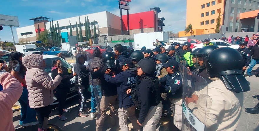 San Luis, SLP, 10 noviembre 2025.- En un operativo conjunto entre fuerzas estatales y municipales de la capital, se desalojó a los manifestantes de la comunidad de Escalerillas que mantenían bloqueada la vialidad de la glorieta del Real Inn, en demanda del servicio de agua potable, del cual carecen desde hace tres meses según los quejosos.