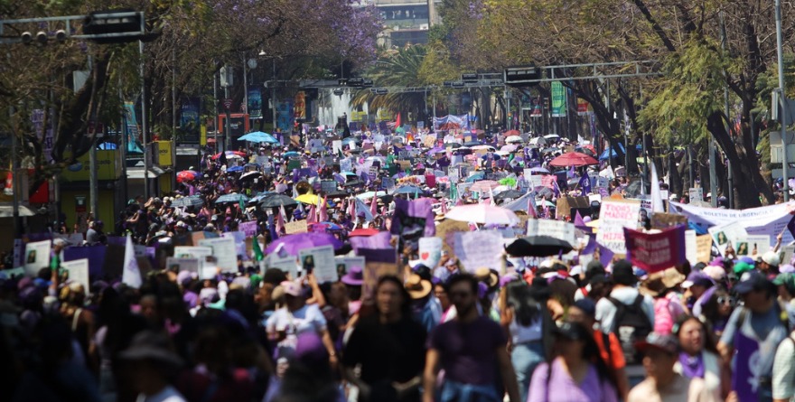 Ciudad de México 8 marzo 2026.- Una ola púrpura que unió a generaciones se extendió ayer en la Ciudad de México por al menos ocho horas, en las que Paseo de la Reforma, Avenida Juárez y el Zócalo congregaron consignas de justicia y reclamos que urgían por la eliminación de la violencia machista.