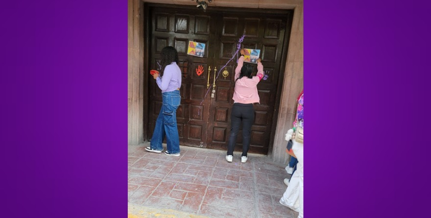 Al arribar a la presidencia municipal, las manifestantes realizaron un acto simbólico consistente en colocar marcas de pintura de sus manos sobre diversas superficies del edificio. Esta intervención busca servir como un recordatorio visual de la exigencia de justicia y un símbolo de apoyo para las familias que han perdido a mujeres a causa de la violencia machista.