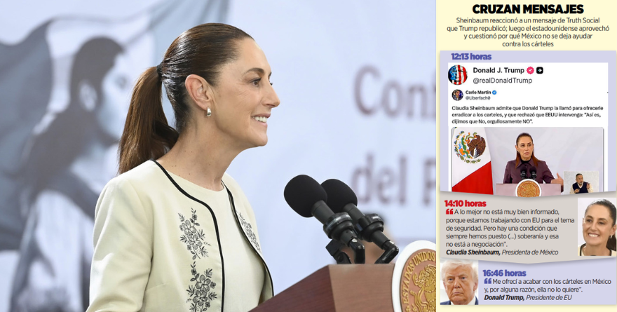 Ciudad de México 14 marzo 2026.- Un inusual cruce de mensajes en 5 horas revivió la tensión entre Sheinbaum y Trump, en la inminencia de la renegociación del T-MEC.
