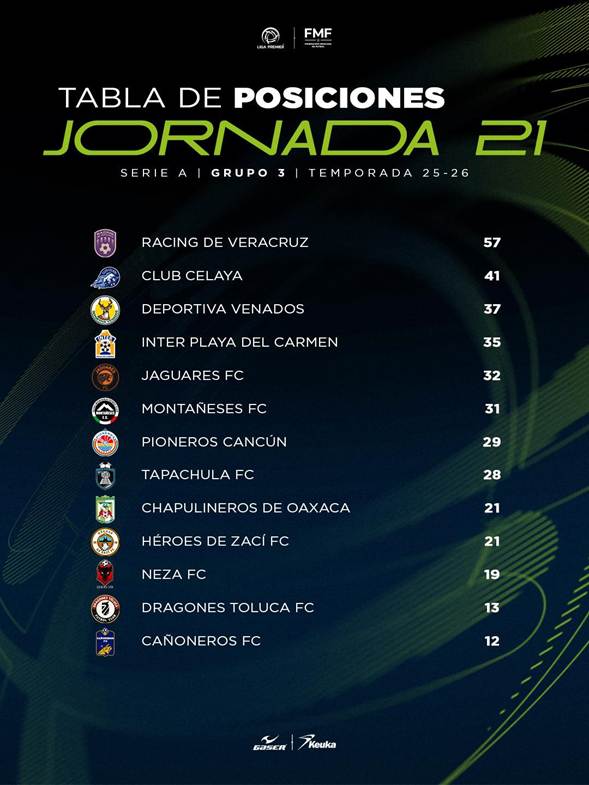- Los Alacranes dirigidos por Jair Real ostentan 57 puntos, los mismos que Racing de Veracruz en el Grupo Tres