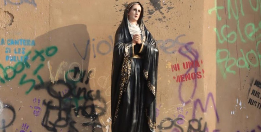 A unos metros, en las inmediaciones de la Catedral, algunos creyentes católicos se interpusieron para evitar que se realizaran más daños al recinto, lo que generó momentos de tensión con las manifestantes.
