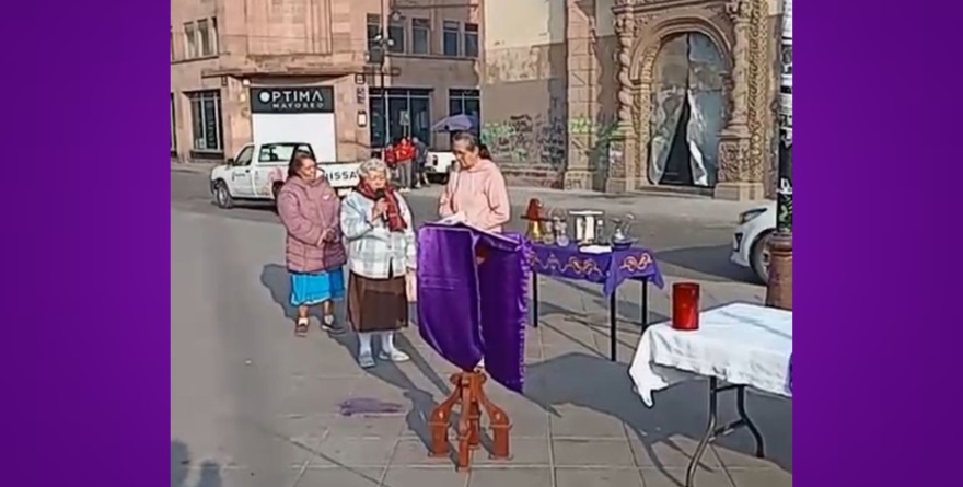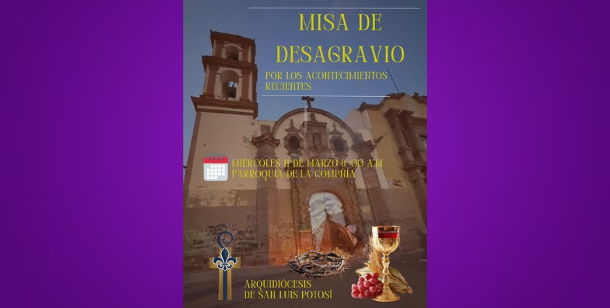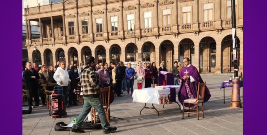 SLP.-La mañana de este domingo la fe tomó la plaza. Con el templo aún marcado por los daños que dejó la marcha del 8 de marzo, la Parroquia de la Compañía convocó a sus fieles a una misa en plena vía pública, frente a Plaza Fundadores, como acto de desagravio por lo ocurrido durante la jornada de protesta.
